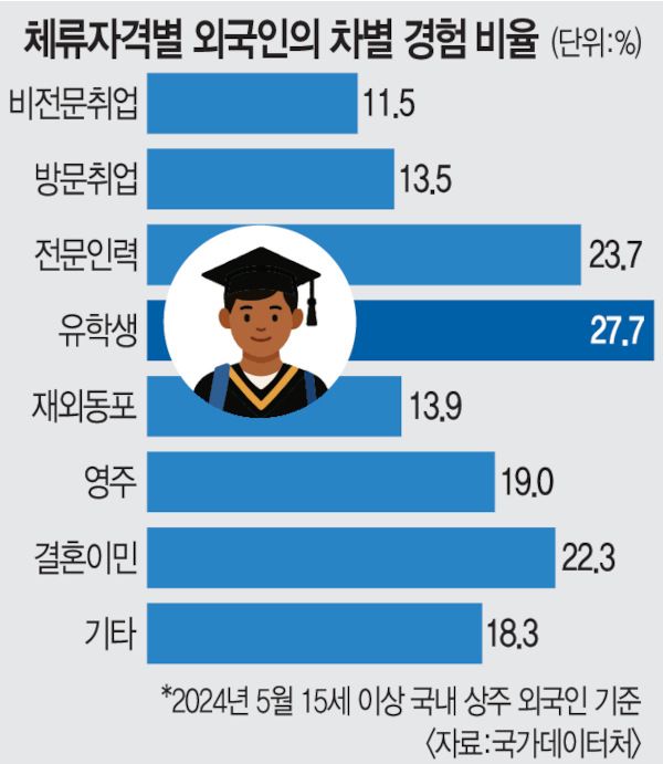 À½½ÄÁ¡, ÆíÀÇÁ¡ µî¿¡¼ ¾Æ¸£¹ÙÀÌÆ®¸¦ ÇÏ´Â ¿Ü±¹ÀÎ À¯ÇлýµéÀÌ Ãâ½Å ±¹°¡ ¶Ç´Â ¹Ì¼÷ÇÑ Çѱ¹¾î µîÀ» ÀÌÀ¯·Î Â÷º°¹Þ´Â »ç·Ê°¡ ´Ã¾î³ °ÍÀ¸·Î ³ªÅ¸³µ´Ù. ±¹°¡µ¥ÀÌÅÍó°¡ Áö³ 3¿ù ¹ßÇ¥ÇÑ 2024³â À̹ÎÀÚ Ã¼·ù½ÇÅ ¹× °í¿ëÁ¶»ç °á°ú¿¡ µû¸£¸é ±¹³» »óÁÖ ¿Ü±¹ÀÎ(2024³â 5¿ù ±âÁØ) ¾à 156¸¸¸í °¡¿îµ¥ 17.4%°¡ Â÷º° ´ë¿ì¸¦ ¹ÞÀº °æÇèÀÌ ÀÖ´Ù°í ´äÇß´Ù.