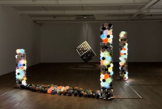 -À̹ø Àü½Ã¿¡´Â Àü¿¡ ¾ø´ø ½Ãµµ°¡ ³ª¿Ô´Ù. ´ç±¸°øÃ³·³ ¸Å²öÇÑ µÕ±Ù ÁÙ¹«´Ì ´ë¸®¼® µ¹ÀÌ °øÁß¿¡ ¸Å´Þ·Á ¼·Î ºÎµúÈ÷¸ç ÀºÀºÇÑ ¼Ò¸®°¡ ³ª´Â ÀÛǰµµ ÀÖ°í, ¾È¿¡ LED Á¶¸íÀÌ µé¾î°¡ µû½ºÇÑ ºÒºûÀÌ ³ª¿À´Â ´ë¸®¼® Á¶°¢µµ ÀÖ´Ù.