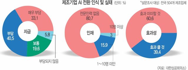 ±¹³» Á¦Á¶±â¾÷µéÀÌ AI Àüȯ Çʿ伺¿¡´Â °ø°¨Çϸ鼭µµ ÀÚ±Ý ºÎÁ·, Àη³­, µµÀÔ È¿°ú¿¡ ´ëÇÑ ºÒÈ®½Å µî Çö½ÇÀû À庮¿¡ ºÎµúÈ÷´Â °ÍÀ¸·Î ³ªÅ¸³µ´Ù. ´ëÇÑ»ó°øÈ¸ÀǼҰ¡ 18ÀÏ °ø°³ÇÑ ¡®AI Àüȯ ½ÇÅÂ¿Í °³¼± ¹æ¾È¡¯ º¸°í¼­¿¡ µû¸£¸é Àü±¹ Á¦Á¶¾÷ü 504°÷ ´ë»ó ¼³¹®Á¶»ç¿¡¼­ 82.3%´Â ¡®¾ÆÁ÷ AI¸¦ °æ¿µ¿¡ Ȱ¿ëÇÏÁö ¾Ê´Â´Ù¡¯°í ´äÇß´Ù. ´ë±â¾÷ÀÇ È°¿ë·üÀº 49.2%·Î Àý¹Ý¿¡ °¡±î¿î ¹Ý¸é Áß¼Ò±â¾÷Àº 4.2%¿¡ ±×ÃÄ AI °ÝÂ÷°¡ ¸Å¿ì ÄÇ´Ù.