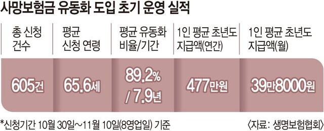»ç¸Áº¸Çè±Ý À¯µ¿È´Â ±ÝÀ¶À§¿øÈ¸°¡ Áö³ 3¿ù ³ë³âÃþÀÇ »ýȰ ÀÚ±Ý È®º¸¸¦ µ½±â À§ÇØ ¹ßÇ¥ÇÑ Á¦µµ´Ù. Á¾½Åº¸Çè »ç¸Áº¸Çè±ÝÀÇ ÃÖ´ë 90%¸¦ »ýÀü¿¡ ¿¬±Ýó·³ ¾µ ¼ö ÀÖµµ·Ï ÇÑ´Ù. ¼ÒºñÀÚ´Â °¡ÀÔÇÑ »óǰÀÇ ÇØ¾àȯ±Þ±Ý ±Ô¸ð¸¦ Åä´ë·Î À¯µ¿È ºñÀ²°ú Áö±Þ ±â°£À» ¼±ÅÃÇØ ¿¬°£ Áö±Þ ±Ý¾×À» Á¶Á¤ÇÒ ¼ö ÀÖ´Ù. À¯µ¿È ºñÀ²ÀÌ ³ô¾ÆÁö°í Áö±Þ ±â°£ÀÌ Âª¾ÆÁú¼ö·Ï ÇÑ ÇØ¿¡ ¹Þ´Â ±Ý¾×Àº ´Ã¾î³ª´Â ±¸Á¶´Ù.