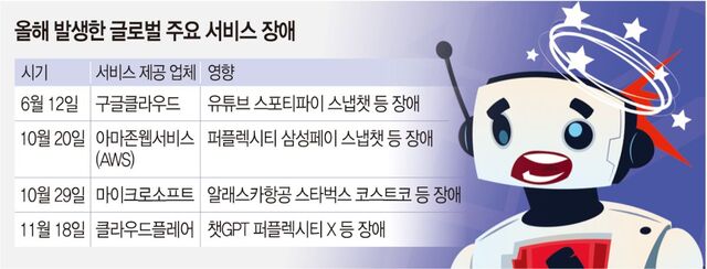 ´ÜÀÏ ±â¾÷ÀÇ ¼ºñ½º ¿À·ù°¡ Àü ¼¼°è¿¡ ÆÄÀåÀ» ¹ÌÄ¡´Â °ÍÀº ¿Â¶óÀÎ ¼ºñ½º°¡ ¼Ò¼öÀÇ ÀÎÇÁ¶ó Á¦°ø ¾÷ü¿¡ °úÀÇÁ¸ÇÏ´Â ±¸Á¶ ¿µÇâÀÌ Å©´Ù. Ŭ¶ó¿ìµå ¼ºñ½º´Â ´ë±Ô¸ð ÀÎÇÁ¶ó°¡ ÇÊ¿äÇØ ÀÏ¹Ý ±â¾÷µéÀÌ ÀÚüÀûÀ¸·Î ±¸ÃàÇÏ±â ¾î·Æ´Ù. AWS¡¤¸¶ÀÌÅ©·Î¼ÒÇÁÆ®¡¤±¸±ÛŬ¶ó¿ìµå µîÀÌ Àü ¼¼°è Ŭ¶ó¿ìµå ½ÃÀåÀ» Àå¾ÇÇÑ ÀÌÀ¯´Ù. ¿À·ùÀÇ ºóµµ¸¦ ÁÙÀ̱â À§Çؼ´Â ´Ù¸¥ Ŭ¶ó¿ìµå ¼ºñ½º¸¦ ¹é¾÷¿ëÀ¸·Î Ȱ¿ëÇÏ´Â ½ÄÀÇ ´ëÀÀÀÌ ÇÊ¿äÇÏ´Ù.