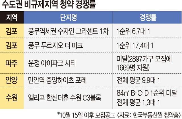 ¼öµµ±Ç ºñ±ÔÁ¦Áö¿ª ³»¿¡¼µµ ¼¿ï°úÀÇ Á¢±Ù¼º, ´ÜÁöÀÇ ÀÔÁö, °¡°Ý °æÀï·Â¿¡ µû¶ó û¾à ¼ºÀûÇ¥°¡ È®¿¬È÷ °¥·È´Ù. ºÐ¾ç ¼ºÀûÀÌ ÁÁÀº ºñ±ÔÁ¦Áö¿ª û¾à ´ÜÁö ÀÚüµµ ¸¹Áö ¾Ê¾Ò´Ù. ºñ±ÔÁ¦Áö¿ªÀÎ °æ±âµµ ¾È¾ç ¸¸¾È±¸¿¡¼ ºÐ¾çµÇ´Â ¡®¸¸¾È¿ª Áß¾ÓÇÏÀÌÃ÷ Æ÷·¹¡¯´Â Æò±Õ °æÀï·üÀÌ 9.9´ë 1À̾úÀ¸³ª ÁÖÅÃÇüº° °æÀï·üÀ» º¸¸é Àü¿ë 59§³´Â 1.3´ë 1, 66§³ AŸÀÔÀº 1.5´ë 1À» ±â·ÏÇß´Ù.