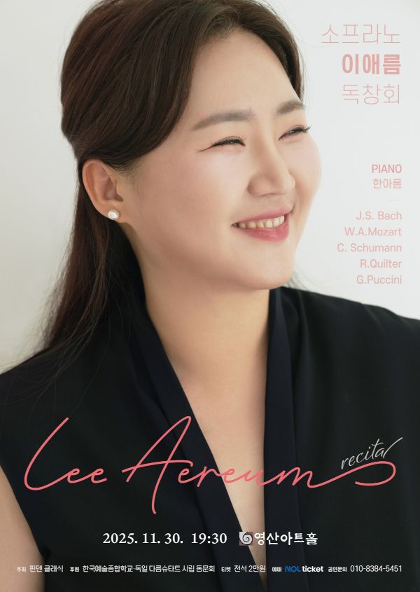 ¼ÒÇÁ¶ó³ë Àָ̾§ÀÇ µ¶Ã¢È¸(Æ÷½ºÅÍ)°¡ ¿À´Â 30ÀÏ ¼¿ï ¿µµîÆ÷±¸ ¿µ»ê¾ÆÆ®È¦¿¡¼ ¿¸°´Ù. Àָ̾§Àº Çѱ¹¿¹¼úÁ¾ÇÕÇб³¸¦ °ÅÃÄ µ¶ÀÏ ´Ù¸§½´Å¸Æ® ½Ã¸³À½´ë °¡°î°ú ¿À¶óÅ丮¿À Àü¹®¿¬ÁÖÀÚ°úÁ¤À» Á¹¾÷Çß´Ù. ±¹³» ´Ù¼öÀÇ ÄáÄí¸£¿¡¼ ÀÔ»óÇÑ ±×´Â À¯ÇÐ Áß µ¶ÀÏ¿¡¼ ¿À¶óÅ丮¿À Àü¹® ¿¬ÁÖÀڷΠȰµ¿ÇÏ¸ç ¿©·¯ ¹«´ë¿¡ ¼¹´Ù. ±Í±¹ ÀÌÈÄ ¼º¾Ç °»ç·Î Ȱµ¿ÇÏ´Â ÇÑÆí ±¹¸³¿ÀÆä¶ó´ÜÀÇ ¡®Å׸¶°¡ ÀÖ´Â ¿ÀÆä¶ó °¥¶ó¡¯, ÀÎõ¼Ò±ØÀå¿ÀÆä¶óÆä½ºÆ¼¹úÀÇ ¡®ÈïºÎ¿Í ³îºÎ¡¯ µî ´Ù¾çÇÑ ¿ÀÆä¶ó¿Í ÄܼƮ ¹«´ë¿¡ ¼°í ÀÖ´Ù. À̹ø µ¶Ã¢È¸¿¡¼´Â ¹ÙÈå ÄŸŸ BWV 49 Áß ¾Æ¸®¾Æ ¡®³ª´Â ¸ÚÁö°í, ³ª´Â ¾Æ¸§´Ù¿ö¡¯, Ŭ¶ó¶ó ½´¸¸ÀÇ ¿¬°¡°î ¡®6°³ÀÇ °¡°î¡¯, ¸ðÂ÷¸£Æ® ¿ÀÆä¶ó ¡®Çǰ¡·ÎÀÇ °áÈ¥¡¯ Áß ¾Æ¸®¾Æ ¡®¾î¼ ¿Í¿ä, ´ÊÁö ¸»°í¡¯ µîÀ» ¼±º¸ÀδÙ. ¹®ÀÇ Çɵ§(010-8384-5451)
