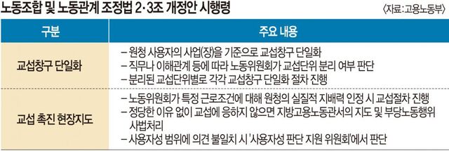 Á¤ºÎ°¡ ³»³â 3¿ù ³ë¶õºÀÅõ¹ý(³ëµ¿Á¶ÇÕ ¹× ³ëµ¿°ü°è Á¶Á¤¹ý 2¡¤3Á¶ °³Á¤¾È) µµÀÔÀ» ¾ÕµÎ°í ¿ø¡¤ÇÏû ³ëÁ¶ÀÇ ±³¼·Ã¢±¸ ´ÜÀÏÈ­¸¦ ¿øÄ¢À¸·Î Ç쵂 Á÷¹« µî¿¡ µû¶ó ¿¹¿ÜÀûÀ¸·Î ±³¼·´ÜÀ§¸¦ ºÐ¸®ÇÒ ¼ö ÀÖµµ·Ï ÇÏ´Â ¹æÄ§À» ³»³ù´Ù.