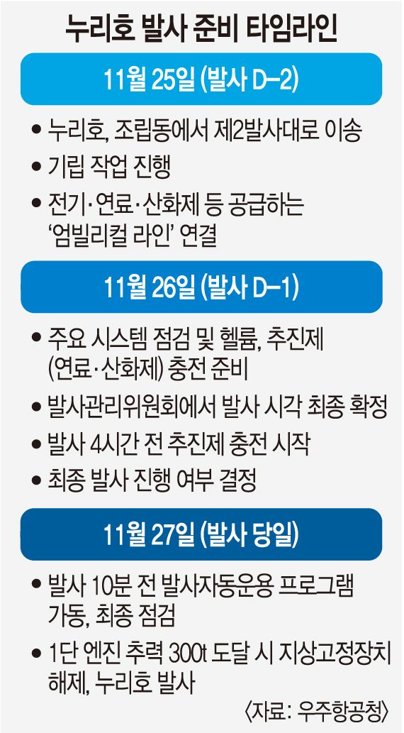 ¡®´º½ºÆäÀ̽º¡¯ ½Ã´ëÀÇ ¼­¸·À» ¿­ ´©¸®È£ÀÇ ³× ¹øÂ° ºñÇàÀÌ ¸·¹ÙÁö Áغñ¿¡ µé¾î°¬´Ù. º»Ã¼ 1~3´ÜÀ» °áÇÕÇÏ´Â ÃÑÁ¶¸³ ÀÛ¾÷ÀÌ ¿Ï·áµÆ°í, ¹ß»ç ¿¹Á¤ ½ÃÁ¡À» ÀÌÆ² ¾ÕµÐ 25ÀϺÎÅÍ´Â ¹ß»çü À̼۰ú ±â¸³, ¿¬·á ÃæÀü, ÃÖÁ¾ Á¡°ËÀÌ ¼øÂ÷ÀûÀ¸·Î ÀÌ·ïÁø´Ù. ¹ß»ç ½Ã°¢Àº 27ÀÏ 0½Ã55ºÐ ÀüÈİ¡ À¯·ÂÇÏÁö¸¸ ºñ, ¹Ù¶÷, ¹ø°³ µî ±â»ó»óȲÀÌ º¯¼ö·Î ÀÛ¿ëÇÒ ¼ö ÀÖ´Ù. ¸ðµç Á¶°ÇÀÌ ÃæÁ·µÅ ¿ìÁÖ±æÀÌ ¿­¸®¸é 13°³ À§¼ºÀ» ǰÀº ´©¸®È£ÀÇ ÀÓ¹«°¡ º»°ÝÀûÀ¸·Î ½ÃÀ۵ȴÙ.
