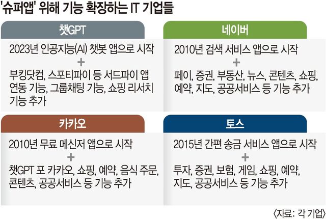 ±¹³» IT ±â¾÷ ¿ª½Ã °æÀïÀûÀ¸·Î ½´ÆÛ¾ÛÀ» ÇâÇÑ Çຸ¸¦ À̾´Â ÁßÀÌ´Ù. ¡®±¹¹Î ¸Þ½ÅÀú¡¯ īī¿ÀÅåÀÌ ´ëÇ¥Àû »ç·Ê´Ù. Ãâ½Ã Ãʱ⿡´Â ´ëÈ ±â´É¿¡ ÁÖ·ÂÇßÁö¸¸, ÇöÀç´Â ¼îÇΰú ¿¹¾à, °ø°ø¼ºñ½º µî ¼ö½Ê °¡Áö ±â´ÉÀÌ ´ã°Ü ÀÖ´Ù. Áö³´Þ¿¡´Â īī¿ÀÅå äÆÃ¹æ ¾È¿¡ ¡®ÃªGPT ÅÇ¡¯À» »ðÀÔÇØ ±âÁ¸ ¼ºñ½º¿Í ¿¬µ¿µµ °¡´ÉÇÏ°Ô Çß´Ù. °Ë»ö ¾ÛÀ¸·Î Ãâ¹ßÇß´ø ³×À̹ö´Â ±ÝÀ¶, Áöµµ, ÄÜÅÙÃ÷ µî ´Ù¾çÇÑ ºÐ¾ß·Î È®ÀåÇϰí ÀÖ´Ù. ±Ã±ØÀûÀ¸·Î´Â ¡®AI ¿¡ÀÌÀüÆ®¡¯·Î ³×À̹ö ¸ðµç ¼ºñ½º¸¦ ¿¬°áÇÏ´Â ÅëÇÕ »ýŰ踦 ¸ñÇ¥·Î ÇÑ´Ù. Å佺 ¾Û ¿ª½Ã °£Æí ¼Û±Ý ¼ºñ½º·Î ½ÃÀÛÇØ ÇöÀç´Â º¸À¯ÇÑ ±â´ÉÀÌ 100°¡Áö°¡ ³Ñ´Â »óȲÀÌ´Ù.