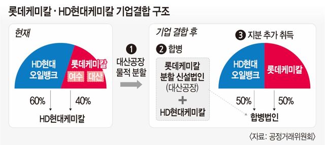 À̹ø »ç¾÷ÀçÆí¾ÈÀº ·Ôµ¥ÄɹÌÄ®ÀÇ ÁÖ¿ä »ç¾÷ÀåÀÎ ´ë»ê°øÀåÀ» ¹°ÀûºÐÇÒÇÏ°í ºÐÇҽż³¹ýÀÎÀÌ HDÇö´ëÄɹÌÄ®°ú ÇÕº´ÇÏ´Â °ÍºÎÅÍ ½ÃÀ۵ȴÙ. ÇÕº´ ÈÄ HDÇö´ëÄɹÌÄ®Àº Á¸¼ÓÇÏ°í ½Å¼³¹ýÀÎÀº ¼Ò¸êµÇ¸ç, ·Ôµ¥ÄɹÌÄ®ÀÌ ÇÕº´¹ýÀÎÀÇ ÁÖ½ÄÀ» Ãß°¡ ÃëµæÇÔÀ¸·Î½á °á°úÀûÀ¸·Î ·Ôµ¥ÄɹÌÄ®°ú HDÇö´ë¿ÀÀϹðÅ©°¡ ÁöºÐÀ» 50%¾¿ º¸À¯ÇÏ´Â ±¸Á¶´Ù. HDÇö´ë¿ÀÀϹðÅ©´Â HDÇö´ëÄɹÌÄ®ÀÇ °øµ¿ ÁÖÁÖ´Ù.