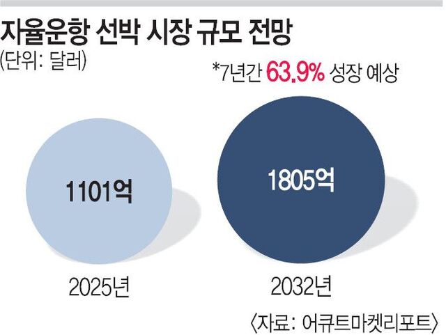 ÀÌ ¶§¹®¿¡ ÀÚÀ²¿îÇ× ±â¼ú ȹµæÀ» À§ÇÑ °æÀïµµ Ä¡¿ÇÏ´Ù. À¯·´¿¬ÇÕ(EU) ÀϺ» Áß±¹ µî ´Ù¼öÀÇ ±¹°¡°¡ Á¤ºÎ ÁÖµµ·Î ¿¬±¸¡¤°³¹ßÀ» ÁøÇà ÁßÀÌ´Ù. EU´Â 2012³âºÎÅÍ ¼±¹Ú ÀÚÀ²¿îÇ×À» À§ÇÑ ¡®¹«´Ñ¡¯ ÇÁ·ÎÁ§Æ®¸¦ ÃßÁøÇؿԴÙ. ÀϺ» Á¤ºÎ ¿ª½Ã ÀÚÀ²¿îÇ×±â¼ú, µðÁöÅÐ ¼±¹Ú±â¼ú °³¹ßÀ» ±¹°¡Àü·«»ç¾÷À¸·Î ÁöÁ¤ÇÑ »óÅ´Ù. Áß±¹Àº ±¹¿µ Á¶¼±¼Ò ÁÖµµ·Î ±¤µÕ¼º ÁÖÇÏÀÌ¿¡ ÀÚÀ²¿îÇ× ¼±¹Ú±â¼úÀ» ½ÇÁõÇÒ ¼ö ÀÖ´Â ÀÎÇÁ¶ó¸¦ ±¸ÃàÇß´Ù. ±Û·Î¹ú Á¶»ç¾÷ü ¾îťƮ¸¶Äϸ®Æ÷Æ®´Â ±Û·Î¹ú ÀÚÀ²¿îÇ× ¼±¹Ú ½ÃÀå ±Ô¸ð°¡ ¿ÃÇØ 1101¾ï ´Þ·¯¿¡¼ 2032³â 1805¾ï ´Þ·¯(¾à 265Á¶¿ø)·Î ¾ÕÀ¸·Î 7³â°£ 63.9% ¼ºÀåÇÒ °ÍÀ¸·Î Àü¸ÁÇß´Ù.
