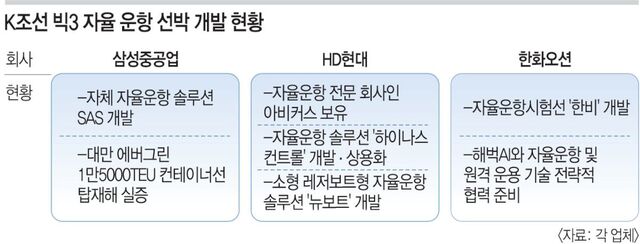 HDÇö´ë ÇÑÈ¿À¼Ç »ï¼ºÁß°ø¾÷ µî ±¹³» Á¶¼± ¡®ºò3¡¯µµ ÀÚÀ²¿îÇ× ±â¼ú ¼±Á¡¿¡ ¼Óµµ¸¦ ³»°í ÀÖ´Ù. ¼±Á¦Àû ´ëÀÀÀ» ÅëÇØ ¹Ì·¡±â¼úÀ» È®º¸ÇÏ°í ¡®¹«Àμ±¹Ú¡¯ ½ÃÀå¿¡¼ ÁÖµµ±ÇÀ» Àâ°Ú´Ù´Â Àü·«ÀÌ´Ù.