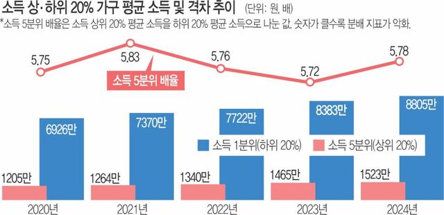 ¼Òµæ °èÃþº° ÀÚ»ê °ÝÂ÷µµ ´õ ¹ú¾îÁ³´Ù. ¼Òµæ 5ºÐÀ§ °¡±¸(»óÀ§ 20%) Æò±Õ ÀÚ»ê(13¾ï3651¸¸¿ø)Àº ÇÏÀ§ 20%ÀÎ 1ºÐÀ§ °¡±¸(1¾ï5913¸¸¿ø)ÀÇ 8.4¹è ¼öÁØÀ¸·Î Áö³ÇØ(7.3¹è)º¸´Ù °ÝÂ÷°¡ È®´ëµÆ´Ù. ¼øÀÚ»ê ¿ª½Ã 5ºÐÀ§(17¾ï4590¸¸¿ø)¿Í 1ºÐÀ§(3890¸¸¿ø) °ÝÂ÷°¡ 44.9¹è·Î Áö³ÇØ(42.1¹è)º¸´Ù Ä¿Á³´Ù.