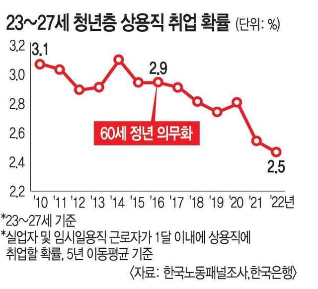Àü¹®°¡µéÀº ¿ì¼± ¹ýÁ¤ Á¤³â¿¬ÀåÀÌ Ã»³â °í¿ë¿¡ ¿µÇâÀ» ¹ÌÄ¡´Â °ÍÀº ºÒ°¡ÇÇÇÏ´Ù°í ÀÔÀ» ¸ð¾Ò´Ù. À̼ö¿µ °í·Á´ë °í·É»çȸ¿¬±¸¿ø ƯÀÓ±³¼ö´Â ¡°Çѱ¹Àº ³ëµ¿½ÃÀåÀÇ ÀÌÁß±¸Á¶°¡ ½ÉÇØ ´ë±â¾÷¡¤°ø°ø±â°ü µî ÇÑÁ¤µÈ ÁÁÀº ÀÏÀÚ¸®¸¦ µÎ°í °í·ÉÀÚ¿Í Ã»³â °£ ¼¼´ë °¥µîÀÌ ¹ß»ýÇÑ´Ù¡±¸ç ¡°³ëÀÎ Àα¸¿¡ ´ëÇÑ ÀçÁ¤ ºÎ´ãÀ» Áû¾îÁú û³âµéÀÌ ÁÁÀº ÀÏÀÚ¸®¿¡ ÁøÀÔÇÏÁö ¸øÇÏ¸é ±¹°¡ Àüü »ý»ê¼º¡¤°æÀï·ÂÀÌ ¾àȵǴ °Í¡±À̶ó°í ÁöÀûÇß´Ù.