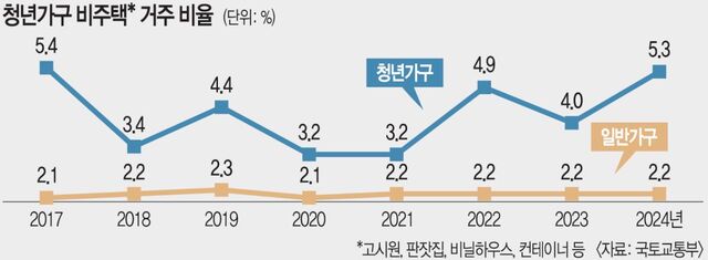 Áö³ÇØ °í½Ã¿ø, ÆÇÀãÁý µî ºñÁÖÅÿ¡ °ÅÁÖÇϴ û³â °¡±¸(°¡±¸ÁÖ ¿¬·É ¸¸19~34¼¼) ºñÁßÀÌ 2017³â(5.4%) ÀÌÈÄ 7³â ¸¸¿¡ ´Ù½Ã 5%´ë¿¡ ÁøÀÔÇÑ °ÍÀ¸·Î ³ªÅ¸³µ´Ù. ÀÏÀÚ¸®¿Í Çо÷À» À§ÇØ ¼öµµ±ÇÀ¸·Î À̵¿Çϴ û³âÀÌ ²ÙÁØÈ÷ ´Ã°í ÀÖÁö¸¸ Àú·ÅÇÑ Àü¡¤¿ù¼¼ ÁÖÅÃÀ» ±¸ÇϱⰡ °¥¼ö·Ï ¾î·Á¿öÁö¸é¼ °ÅÁÖ È¯°æÀÌ ÁÁÁö ¾ÊÀº ºñÁÖÅÃÀ¸·Î ³»¸ô¸®°í ÀÖ´Ù´Â ºÐ¼®ÀÌ´Ù.