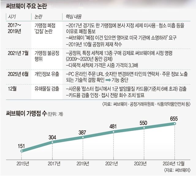 °©Áú ³í¶õÀº ÀÌÈÄ¿¡µµ ¹Ýº¹µÆ´Ù. 2021³â¿¡´Â ƯÁ¤ ¼¼Ã´Á¦ 13Á¾ ±¸¸Å¸¦ °Á¦ÇÑ ÇøÀÇ·Î °øÁ¤°Å·¡À§¿øÈ¸·ÎºÎÅÍ ½ÃÁ¤¸í·ÉÀ» ¹Þ±âµµ Çß´Ù. ½áºê¿þÀÌ´Â 2009³â 10¿ùºÎÅÍ 2020³â 4¿ù±îÁö °¡¸ÍÁ¡Áֵ鿡°Ô 13Á¾ÀÇ ¼¼Ã´Á¦¸¦ ƯÁ¤ ȸ»ç Á¦Ç°¸¸ ±¸¸ÅÇϵµ·Ï Çß´Ù. ÁöÁ¤ ¼¼Ã´Á¦¸¦ ±¸¸ÅÇÏÁö ¾ÊÀ» °æ¿ì ¹úÁ¡ ´©ÀûÀ¸·Î º»»ç¿Í °è¾àÀÌ ÇØÁöµÉ ¼ö ÀÖ¾î ÇØ´ç ¹°Ç°À» ±¸ÀÔÇÒ ¼ö¹Û¿¡ ¾ø´ø °ÍÀ¸·Î µå·¯³µ´Ù.