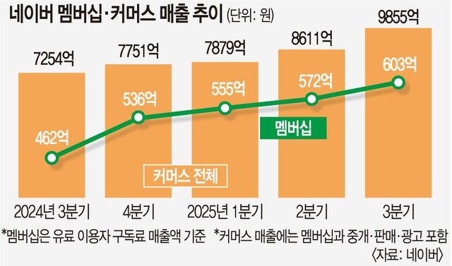 ³×À̹ö ¸â¹ö½ÊÀº »ç¿ëÀÚ¸¦ °¡µÖµÎ´Â ¡®¶ôÀΡ¯ È¿°ú·Î Àüü Ä¿¸Ó½º ¸ÅÃâÀ» °ßÀÎÇÏ´Â ¿ªÇÒµµ Çϰí ÀÖ´Ù. ¿ÃÇØ 3ºÐ±â ³×À̹ö ¸â¹ö½Ê ±¸µ¶·á ¸ÅÃâÀº 603¾ï¿øÀ¸·Î, Àü³â µ¿±â 462¾ï¿ø¿¡ ºñÇØ 30% ¿Ã¶ú´Ù. Ä¿¸Ó½º ¸ÅÃâÀÇ °æ¿ì Áö³ÇØ 3ºÐ±â¿¡ ºñÇØ 35.9%°¡ Áõ°¡ÇÏ¸ç ³×À̹ö ÁÖ¿ä »ç¾÷ Áß °¡Àå ³ôÀº ¼ºÀå·üÀ» º¸¿´´Ù.