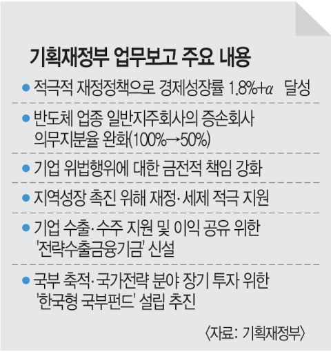 Á¤ºÎ°¡ ³»³â »ó¹Ý±â Áß ¡®Çѱ¹Çü ±¹ºÎÆÝµå¡¯¸¦ Ãâ¹üÇϰڴٴ °èȹÀ» 11ÀÏ ÀÌÀç¸í ´ëÅë·É¿¡°Ô º¸°íÇß´Ù. °³º° ±â¾÷ÀÌ °¨´çÇϱ⠾î·Á¿î ±¹³»¡¤¿Ü ´ë±Ô¸ð »ç¾÷À» Áö¿øÇϱâ À§ÇÑ Àç¿øÀ» ¸¶·ÃÇϰڴٴ ÃëÁö´Ù. Á¤ºÎ´Â ¹ÝµµÃ¼ µî ÷´Ü»ê¾÷ ºÐ¾ß¸¦ ´ë»óÀ¸·Î ÀϹÝÁöÁÖȸ»çÀÇ Áõ¼Õȸ»ç ÁöºÐ º¸À¯ ¿ä°ÇÀ» ÇöÇà 100%¿¡¼ 50%·Î Ç®¾îÁÖ´Â ¹æ¾Èµµ ÃßÁøÇÑ´Ù. ±Ý»êºÐ¸® ÃëÁö´Â À¯ÁöÇ쵂 SKÇÏÀ̴нº°¡ ¹ÝµµÃ¼ »ý»ê È®´ë¿¡ ¿ÜºÎ ÅõÀÚ±ÝÀ» Ȱ¿ëÇÒ ¼ö ÀÖµµ·Ï ¿ìȸ·Î¸¦ ¿¾îÁÖ±â·Î Çß´Ù.