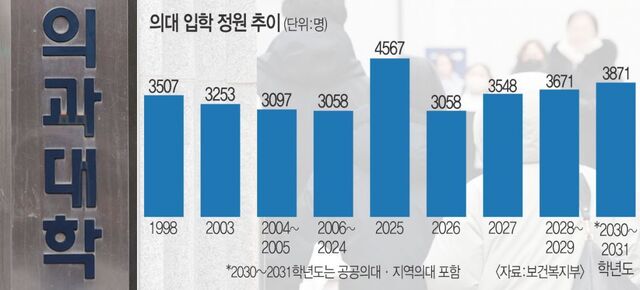º¸°Çº¹ÁöºÎ¿¡ µû¸£¸é ¿ÃÇØº¸´Ù ´Ã¾î³ ÀÔÇÐ Á¤¿øÀº 2027³â 490¸í, 2028~2031³â °¢ 613¸íÀ¸·Î ÃÑ 2942¸íÀÌ Áö¿ªÀÇ»ç ÀüÇü¿¡ ¹èÁ¤µÈ´Ù. 2030~2031³â¿¡´Â °ø°øÀÇ´ë¿Í Áö¿ªÀÇ´ë¿¡¼ 400¸íÀÌ Ãß°¡ ¾ç»êµÅ Áö¿ª¡¤ÇʼöÀÇ·á °È¿¡ ±â¿©ÇÒ Àü¸ÁÀÌ´Ù.